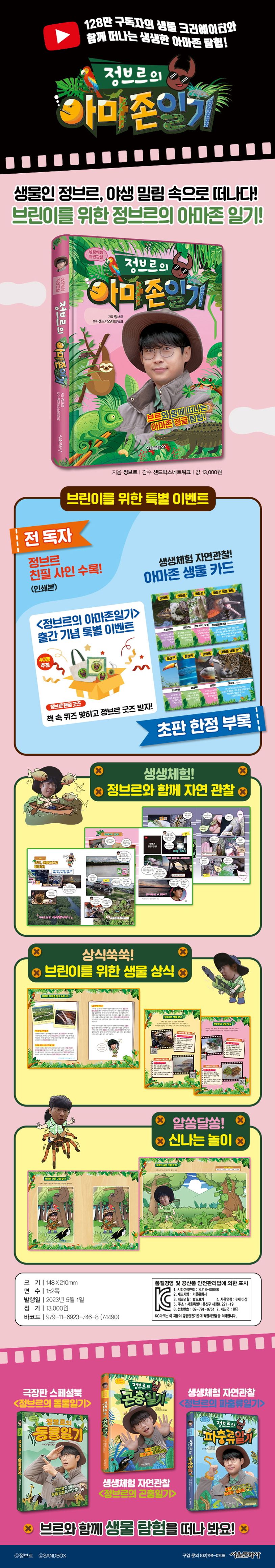 세상은 넓고 생물은 많다~! 한 번쯤 아마존 정글을 탐험하고 싶었던 브린이들의 필독 도서! 생물 박사 정브르와 함께 아마존으로 떠나요!