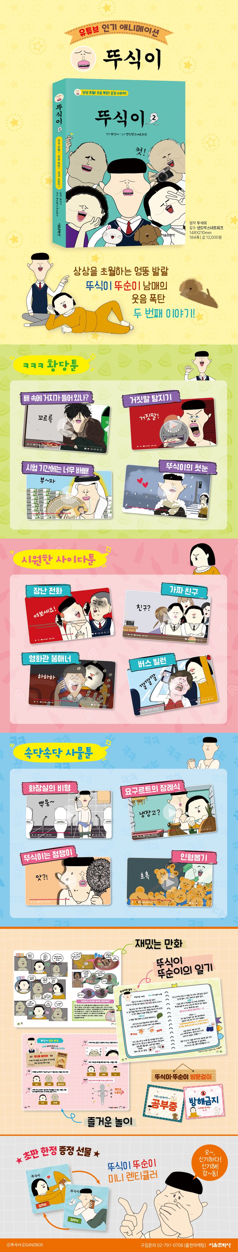 일상에서 벌어지는 황당하고 웃긴 이야기부터 생활 속 빌런을 시원하게 혼내 주는 유쾌한 이야기까지! 볼수록 빠져드는 뚜식이, 뚜순이 남매의 상상 초월 웃음 폭탄 두 번째 이야기를 기대해 주세요. 재미있는 만화 뒤에는 뚜식이, 뚜순이가 전하는 엉뚱하고 유쾌한 고민 해결 팁도 소개됩니다.