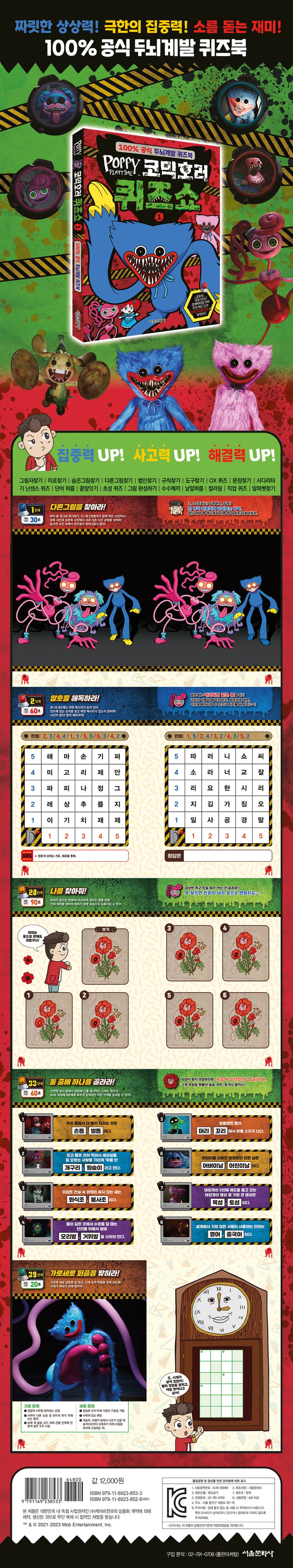 파피 플레이타임 코믹호러 퀴즈쇼 1 (100% 공식 두뇌계발 퀴즈북)