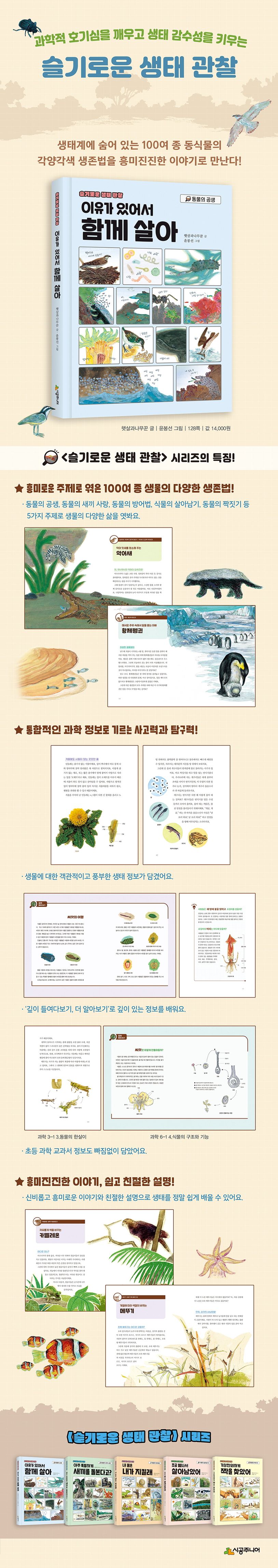 현란한 색깔 변화, 목숨을 건 모험 이야기와 같은 다채로운 동식물의 세계는 아이들의 호기심을 자극하며 어떤 모험 소설보다 흥미진진하게 아이들의 마음을 사로잡을 것이며, 생물들의 신기한 이야기를 재미있게 읽다 보면 자연스럽게 초등 교과서의 과학 정보도 얻을 수 있다. 생물들이 살아가는 경이로운 이야기를 통해 생태계의 진리와 상생의 가치를 함께 배울 수 있는 것은 물론이다.