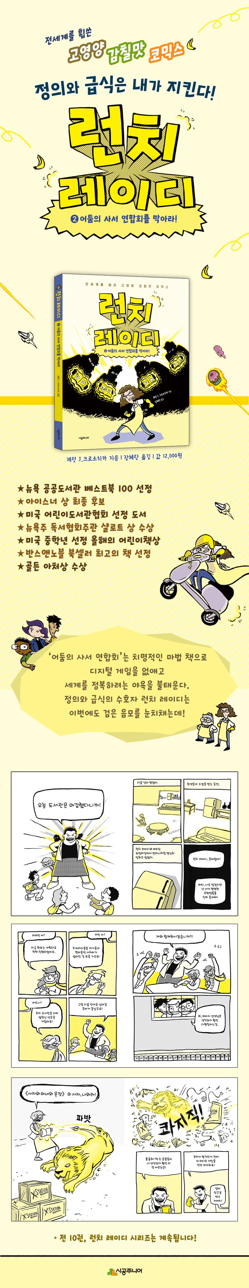 뉴욕타임스 베스트셀러 작가로 선정된 작가 재럿 J. 크로소치카가 유머러스한 이야기와 발랄한 노란색으로 포인트를 준 그림으로 새로운 액션 히어로물 〈런치 레이디〉를 만들어 냈다. 단, 이 시리즈에서 우리가 만날 슈퍼 영웅은 구릿빛 피부의 울룩불룩 근육맨이거나, 돈이 많은 부자거나, 혹은 외계에서 온 초능력자가 아니다. 주변에서 흔히 만날 수 있는 아줌마, 그것도 학교에서 급식을 책임지는 영양사 선생님이다. 평범하기 그지없는 학교 영양사 선생님이 사실은 도시의 악당을 물리치는 슈퍼 영웅이었다니!