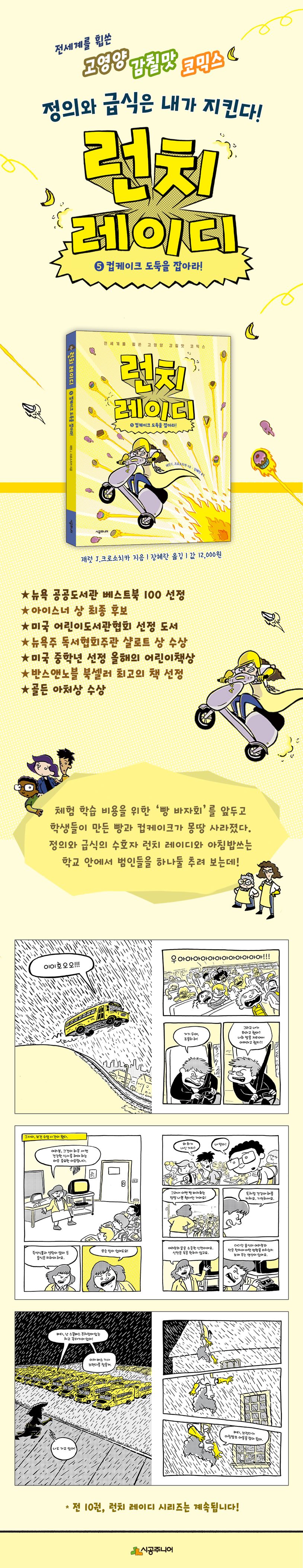뉴욕타임스 베스트셀러 작가로 선정된 작가 재럿 J. 크로소치카가 유머러스한 이야기와 발랄한 노란색으로 포인트를 준 그림으로 새로운 액션 히어로물 〈런치 레이디〉를 만들어 냈다. 단, 이 시리즈에서 우리가 만날 슈퍼 영웅은 구릿빛 피부의 울룩불룩 근육맨이거나, 돈이 많은 부자거나, 혹은 외계에서 온 초능력자가 아니다. 주변에서 흔히 만날 수 있는 아줌마, 그것도 학교에서 급식을 책임지는 영양사 선생님이다. 평범하기 그지없는 학교 영양사 선생님이 사실은 도시의 악당을 물리치는 슈퍼 영웅이었다니!