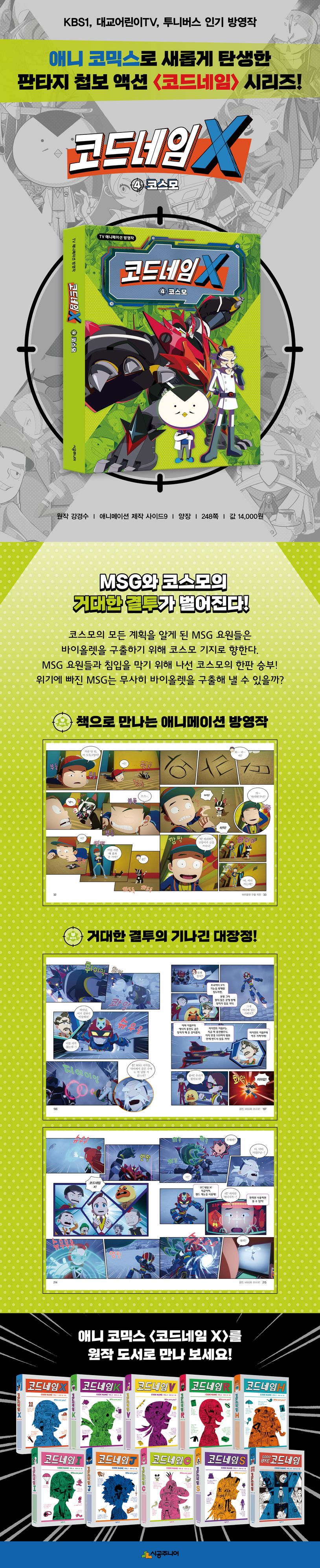 평범한 소년이 첩보원이 되어 미션을 해결하고, 성장하는 과정을 다양한 볼거리가 담긴 애니 코믹스 〈코드네임 X〉 시리즈를 통해 함께 울고 웃으며 지켜보길 바란다.