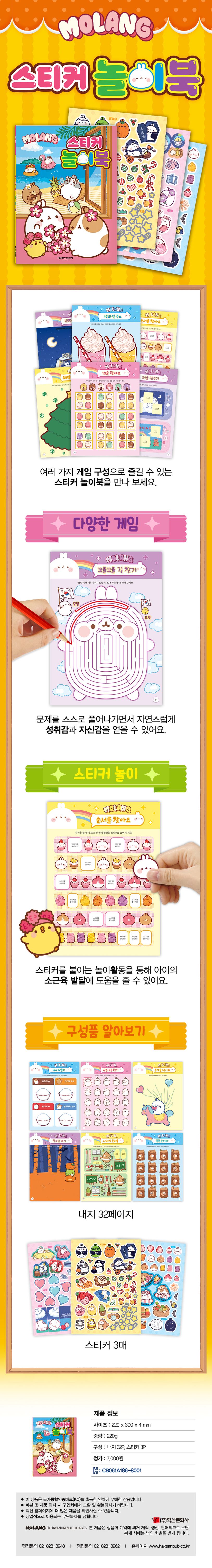 한권에여러가지다양한활동들이가득!재미있는스티커놀이도함께즐겨요!아이들이좋아하는캐릭터로다양한활동들을통해지능을향상시키는EQ,IQ개발프로그램입니다.하나,좋아하는캐릭터가가득가득들어있는스티커가3장이나!몰랑스티커가알차게들어있어아이들에게인기만점!스티커놀이를하면서손가락의소근육활동이늘어나집중력과사고력을길러줍니다.둘,우리아이자신감과성취감도쑥쑥!재미있는게임을통해문제를스스로해결함으로써자신감과성취감을길러주며부모님또는친구와함께하는건강한게임은아이들의성장발달에좋은영향을줍니다.