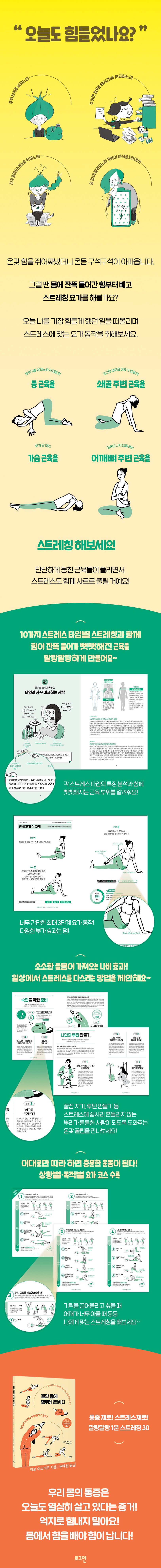 전쟁 같은 오늘을 살아내느라 힘내는 사이, 우리 몸과 마음은 스트레스로 인해 딱딱하게 굳어간다. 우리의 어깨나 목의 통증이 사라지지 않는 건 열심히 힘을 내며 살고 있다는 반증이 아닐까? 하루 종일 힘내느라 고생한 나에게 잠깐이라도 힘 빼는 시간을 주자. 불필요하게 오남용 되고 있는 힘을 빼야 진짜로 힘이 필요할 때 힘을 낼 수 있는 법이다.