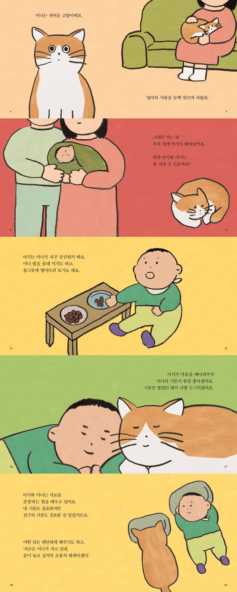 아기의 탄생은 너무 빛나는 일이지만 반려동물에게는 위기의 순간이 되기도 합니다. 그 과정에서 정말 안타깝게도 많은 반려동물들이 버려지기도 합니다. 아기와 고양이가 충분히 함께할 수 있음을 널리 알리고자 책을 만들게 되었습니다.