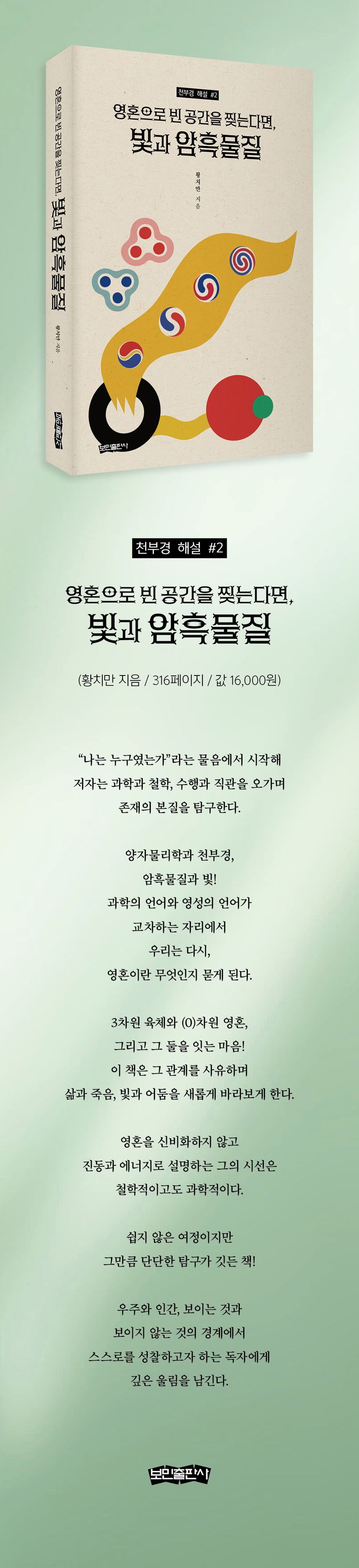 이 책의 중심에는 ‘존재’에 대한 깊은 사유가 있다. 저자는 ‘영혼’이라는 단어를 신비화하지 않는다. 영혼은 어떤 환상적 개념이 아니라, 우리 내면에 실재하는 진동과 에너지이며, 이 우주의 구조와 떼려야 뗄 수 없는 존재로 설명된다. 그는 천부경에서 말하는 ‘일시무시일’을 통해 모든 존재가 무(無)에서 비롯되어 다시 무로 귀결되며, 그 흐름의 한가운데에 인간의 마음과 영혼이 자리하고 있음을 설파한다. 이 사유는 물리학에서 말하는 진공, 즉 ‘아무것도 없다고 여겨지는 그 공간’이 오히려 모든 것의 출발점이라는 과학적 인식과도 절묘하게 맞닿아 있다. 저자는 말한다.