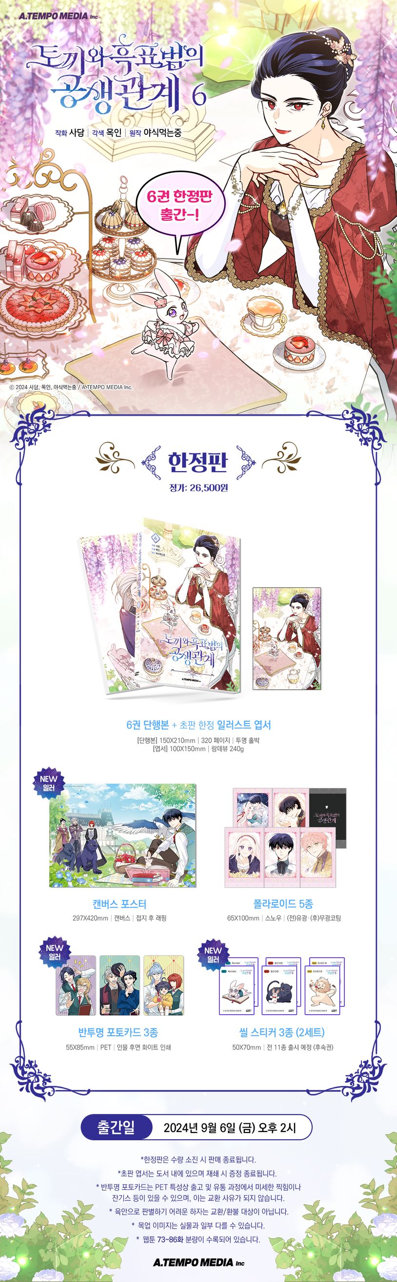 「토끼와 흑표범의 공생관계」 6권 + 씰 스티커 3종 2세트 + 반투명 포카 3종 + 폴라로이드 5종 + 캔버스 포스터