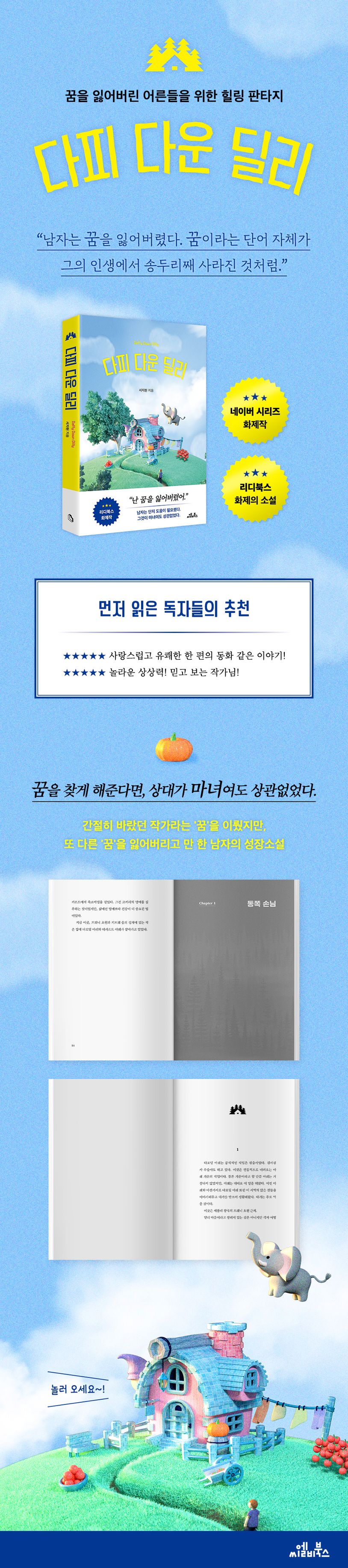 ‘꿈’을 잃어버린 한 남자가 남대륙 세블레 왕국에 살고 있는 마법사를 찾아가 도움을 청한다는 이야기. 《다피 다운 딜리》는 ‘네이버 시리즈’와 ‘리디북스’에 연재되며 많은 독자들의 사랑을 받은 어른들을 위한 판타지 성장소설이다.