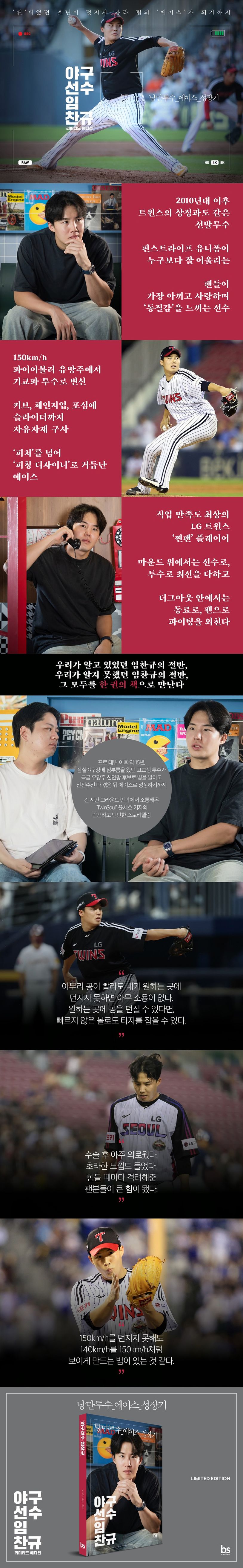 그런 특별한 스토리를 가진 선수이기에, 팬들에게 낭만 넘치는 감동을 전해줄 수 있는 선수이기에 브레인스토어 출판사는 『야구선수 임찬규 - 낭만투수 에이스 성장기』라는 책을 작업하기에 이른다. LG 트윈스라는 인기 구단에서 원클럽맨 커리어를 이어온 것을 넘어 이제는 명실상부 KBO 리그 전체를 대표하는 선발투수로 자리잡은 임찬규의 스토리텔링과 낭만이 책으로 출간되는 것이다.