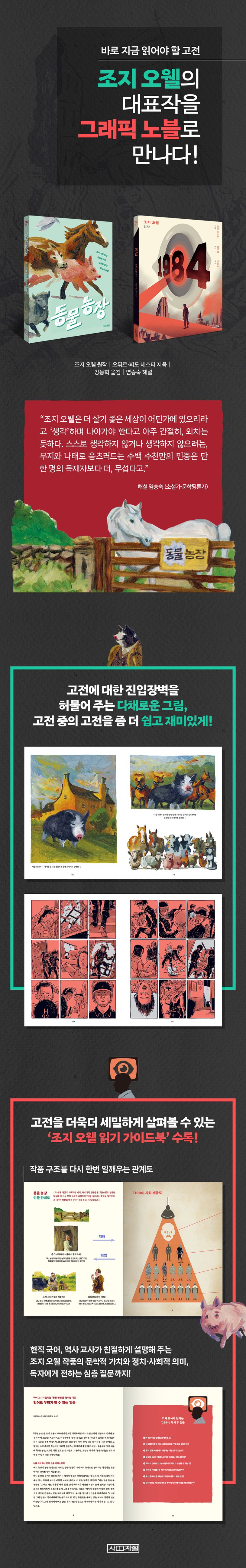 ‘클래식 그래픽 노블’에서는 고전을 처음 접하는 독자들을 위해 보다 쉽고 면밀하게 한 권의 작품을 살펴볼 수 있는 내용을 수록하였다. 작품 내에 염승숙 소설가ㆍ문학평론가의 깊이 있는 해설과 현직 국어, 역사 교사가 제안하는 ‘조지 오웰 읽기 가이드북’까지 다채로운 자료도 함께 실었다.