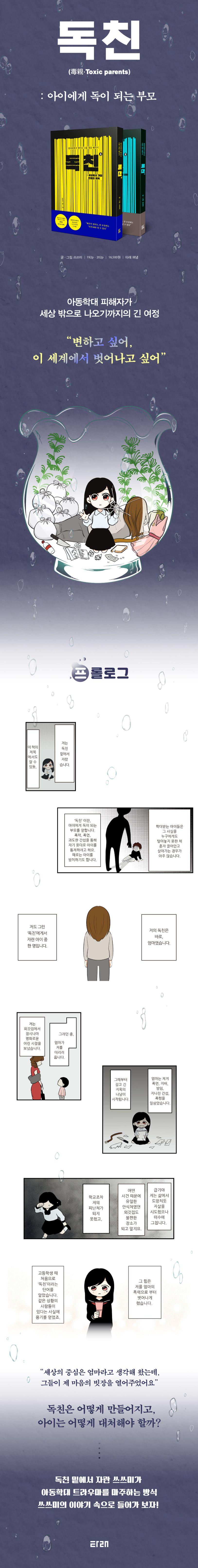 이 책의 모든 페이지는 생존의 기록이다. 아동학대 피해자가 트라우마를 이겨내고 세상 밖으로 나오기까지의 긴 여정을 담았다. 실화를 바탕으로 했으나 만화 형식을 빌려 그리 무겁지 않게 다뤘다. 무엇이 옳고 그른 것인지를 배우기도 전에 엄마 눈치를 살피는 법부터 배운 아이. 그런 아이가 누군가와 연대하고 자립하며 일어서는 과정은 큰 위로로 다가온다.
