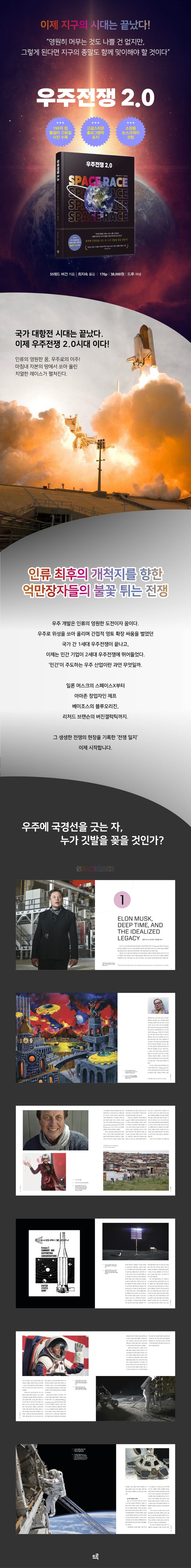 저자는 〈인터레스팅 엔지니어링〉의 선임 편집자로 쌓았던 우주 관련 경험과 자료를 책에 녹여냈다. 민간 우주항공 기업의 선구자인 일론 머스크, 제프 베이조스, 리처드 브랜슨 등과 그들의 회사인 스페이스X, 블루오리진, 버진갤럭틱 등을 자세히 소개한다. 또한, 중국 같은 신흥 우주 강국을 꿈꾸는 국가가 어떻게 민간 우주 경쟁에 참여하고 있는지도 설명한다.