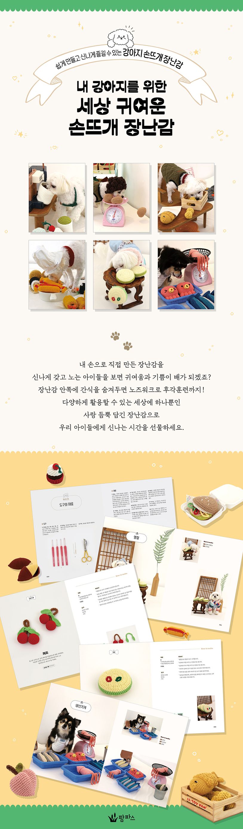 쉽게 만들어서 신나게 놀 수 있는 장난감을 직접 만들어주고 싶다면? 바로 이 책이 시원하게 그 방법을 알려드립니다. 손뜨개를 한 번도 해보지 않았어도 괜찮아요. 완전 초보를 위해 실과 부자재 선택하는 법, 간단한 뜨개법 등 세세하게 기초부터 차근차근 알려드려요. 손뜨개에 익숙하다면 디테일을 살릴 수 있는 고급 스킬까지, 사랑을 듬뿍 담아 36가지 장난감을 만들어보세요. 내가 직접 만들어 안전하고, 장난감 안쪽에 간식을 숨겨 노즈워크로 후각훈련까지! 다양하게 활용할 수 있는 손뜨개 장난감으로 우리 아이들에게 신나는 시간을 선물하세요!