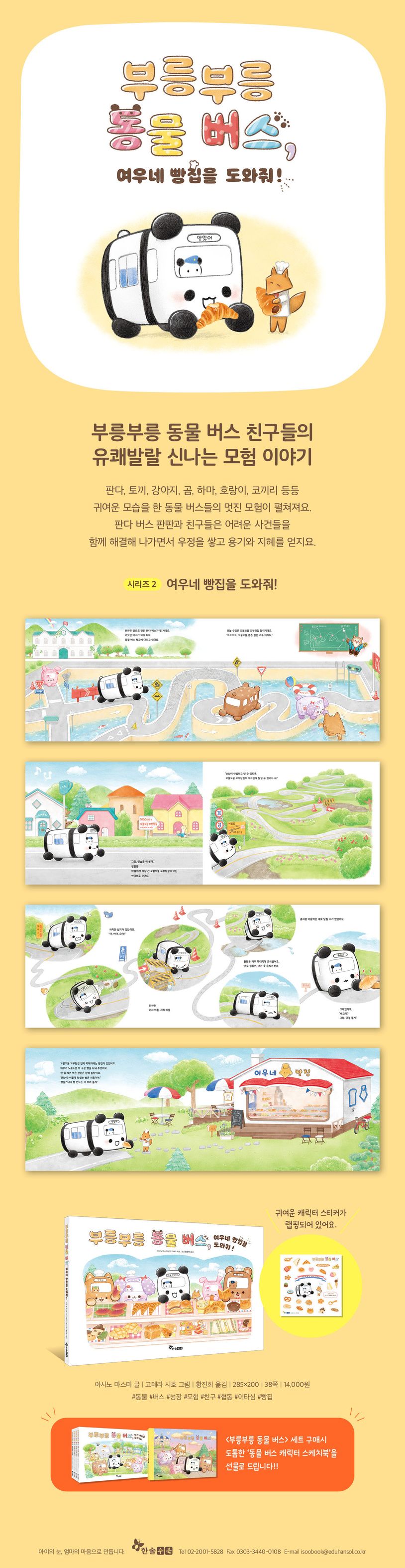 하지만 정작 여우네 빵집에는 손님이 없대요. 가게가 마을에서 멀기도 하고, 꼬불꼬불 꼬부랑길을 달려 높이 올라와야 하기 때문이죠. 문 닫을 위기에 처한 여우네 빵집. 맛있는 빵과 멋진 경치까지 볼 수 있는 여우네 빵집을 도울 방법은 없을까요? 판판과 동물 버스 친구들은 여우네 빵집을 살리기 위해 머리를 맞대지요. 동물 버스들은 어떤 방법으로 여우네 빵집을 도울까요? 그리고 여우는 빵집 문을 닫지 않고 계속 맛있는 빵을 만들 수 있을까요?