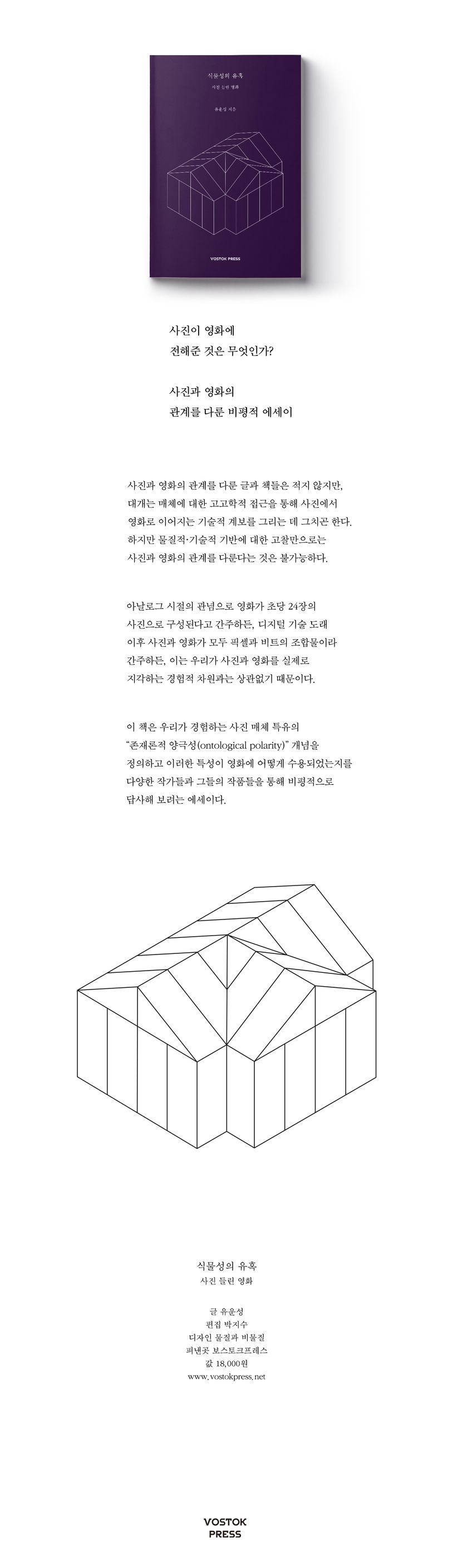 사진과 영화의 관계를 다룬 글과 책들은 적지 않지만, 대개는 매체에 대한 고고학적 접근을 통해 사진에서 영화로 이어지는 기술적 계보를 그리는 데 그치곤 한다. 하지만 물질적·기술적 기반에 대한 고찰만으로는 사진과 영화의 관계를 다룬다는 것은 불가능하다. 아날로그 시절의 관념으로 영화가 초당 24장의 사진으로 구성된다고 간주하든, 디지털 기술 도래 이후 사진과 영화가 모두 픽셀과 비트의 조합물이라 간주하든, 이는 우리가 사진과 영화를 실제로 지각하는 경험적 차원과는 상관없기 때문이다. 이 책은 우리가 경험하는 사진 매체 특유의 “존재론적 양극성(ontological polarity)” 개념을 정의하고 이러한 특성이 영화에 어떻게 수용되었는지를 다양한 작가들과 그들의 작품들을 통해 비평적으로 답사해 보려는 에세이다.