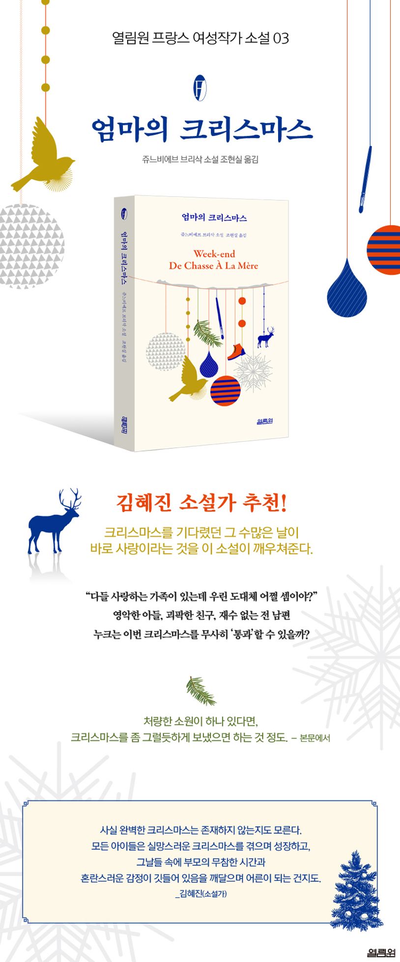 《열림원 프랑스 여성작가 소설》 세 번째 책. 소설가이자 아동문학 작가인 쥬느비에브 브리삭의 소설로 1996년 페미나상 수상작이다.