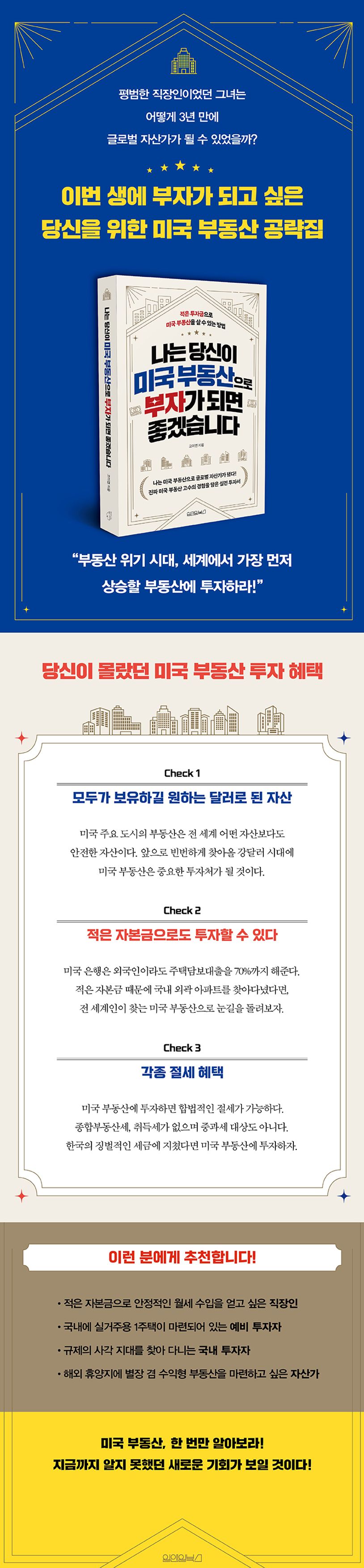 저자는 미국 부동산에 투자한 경험을 바탕으로 미국 부동산 투자 자문회사인 ‘글로벌프론티어에셋’을 운영하고 있다. 지금까지 1천여 명에게 미국 부동산 투자 강연을 했고, 300여 명에게 일대일 자문을 했으며, 100여 명이 미국 부동산을 매수하도록 컨설팅했다. 실제 투자자의 입장을 꼼꼼하게 헤아린 이 책과 함께 미국 부동산 투자를 시작해보자.