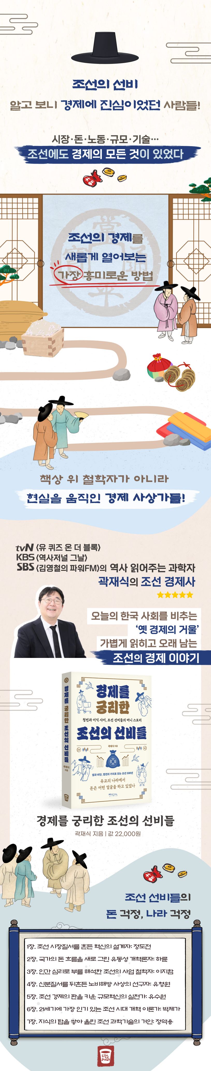 조선 시대를 떠올리면 고리타분한 신분제나 농사 이야기부터 떠오르기 마련이다. 하지만 막상 속을 들여다보면, 조선은 생각보다 훨씬 더 활기 넘치고 복잡한 경제의 무대였다. 장터는 지역별로 성격이 달라 활발히 움직였고, 화폐는 늘 부족해서 ‘이걸 어떻게 돌려 막을지’가 국가적 난제였다. 기술은 조용히, 그러나 꾸준히 혁신을 이어갔다. 『경제를 궁리한 조선의 선비들』은 바로 이 ‘속을 들여다봐야 보이는 조선 경제의 진짜 얼굴’을 흥미롭게 파헤치는 책이다.