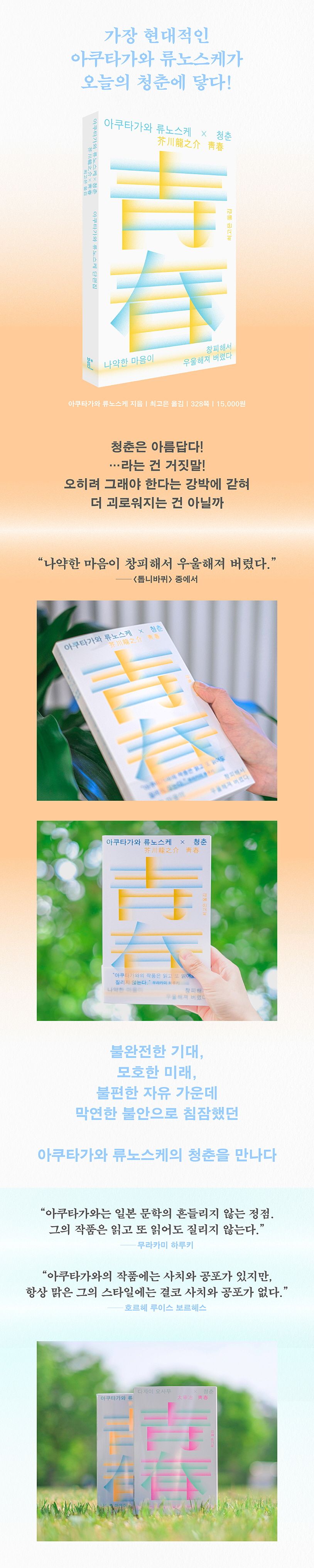 ‘청춘’만큼 반짝거리는 단어도 없지만 그렇기 때문에 다른 한편으로 청춘은 반짝거리지 못할까 봐 두려워지는 때이기도 하다. 아쿠타가와가 말했던 막연한 불안 역시 그런 의미 아니었을까. 이 책을 통해 많은 이들이 지금까지 미처 알지 못했던 아쿠타가와 류노스케와 교감하고, 위로받을 수 있길 바라본다.