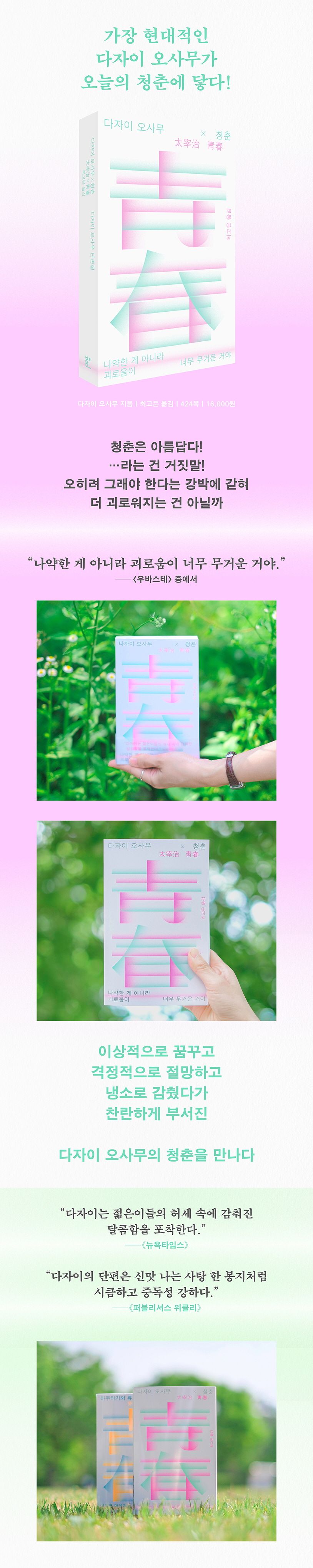 ‘청춘’만큼 반짝거리는 단어도 없지만 그렇기 때문에 다른 한편으로 청춘은 반짝거리지 못할까 봐 두려워지는 시기이기도 하다. 지금의 명성을 생각하면 의아하지만 다자이 오사무 역시 그랬다. ‘아쿠타가와 상’에서 세 번이 낙선해 크게 상처 받았고, 소설에 새로운 실험과 시도를 한 만큼 쏟아지는 비판을 감내해야 했다. 그리고 결국 서른아홉에 스스로 생을 마감했다. 치열한 청춘을 살았던 그의 이야기 안에서 오늘을 사는 청춘들이 위로받을 수 있길 바라 본다.