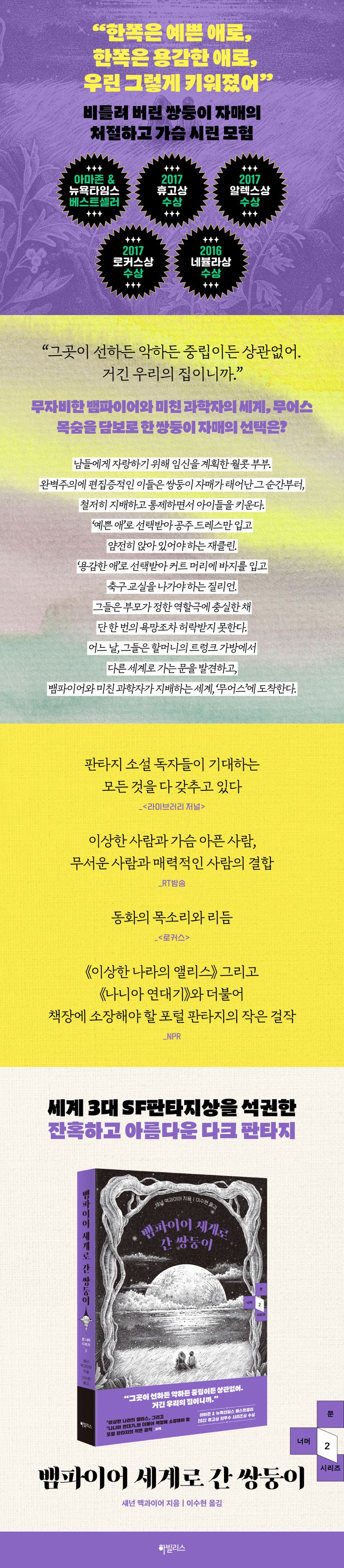 섀넌 맥과이어의 ‘문 너머’ 시리즈는 독특한 세계관과 생생한 캐릭터, 서정적인 문체로 사랑받으며 베스트셀러에 오른 판타지이다. 출간 즉시 3대 SF판타지상을 석권한 1권은 물론이고, 2022년에는 휴고상 최우수 시리즈상을 다시 한번 수상하며 작품성을 인정받았다. 독창적이고 흥미진진한 다크 판타지임과 동시에, 정체성에 대한 다양한 문제의식을 던지며 공감을 불러일으키는, 어른들을 위한 잔혹 동화이기도 하다.