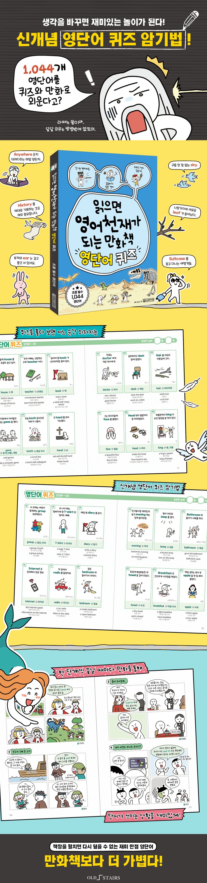 읽으면 영어천재가 되는 만화책: 영단어 퀴즈 (초등 필수 1044 영단어)