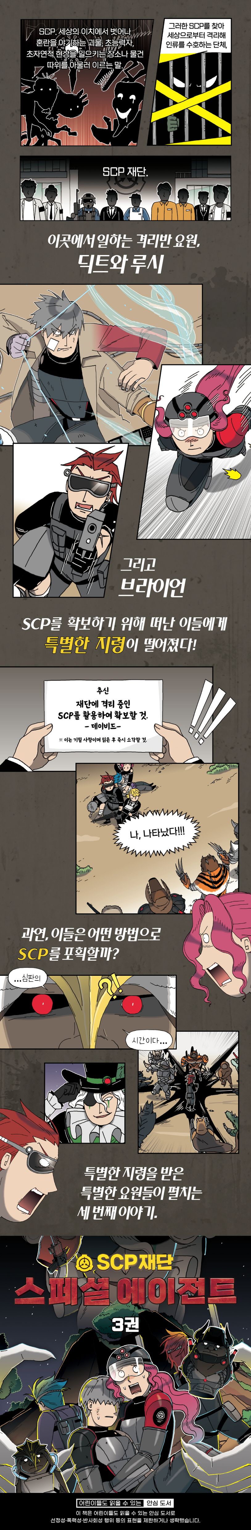 놀라운 상상력이 가득한 ‘SCP 재단’의 이야기를 재미있는 만화와 생생한 삽화로 새롭게 풀어낸 그래픽 노블 시리즈 「SCP 재단 스페셜 에이전트」. 「확보하고 격리하고 보호하라 SCP 재단」 시리즈를 재미있게 본 독자들은 물론, 처음 SCP 재단 이야기를 접하는 독자들도 재미있게 즐길 수 있도록 만들었다. 「SCP 재단」 시리즈가 재단 안, 격리된 SCP들에 초점을 맞춰 이야기를 풀어나가고 있다면, 「SCP 재단 스페셜 에이전트」 시리즈는 재단 밖에서 SCP를 포획하기 위해 고군분투하는 요원들에게 보다 초점을 맞춰 이야기를 풀어나간다.