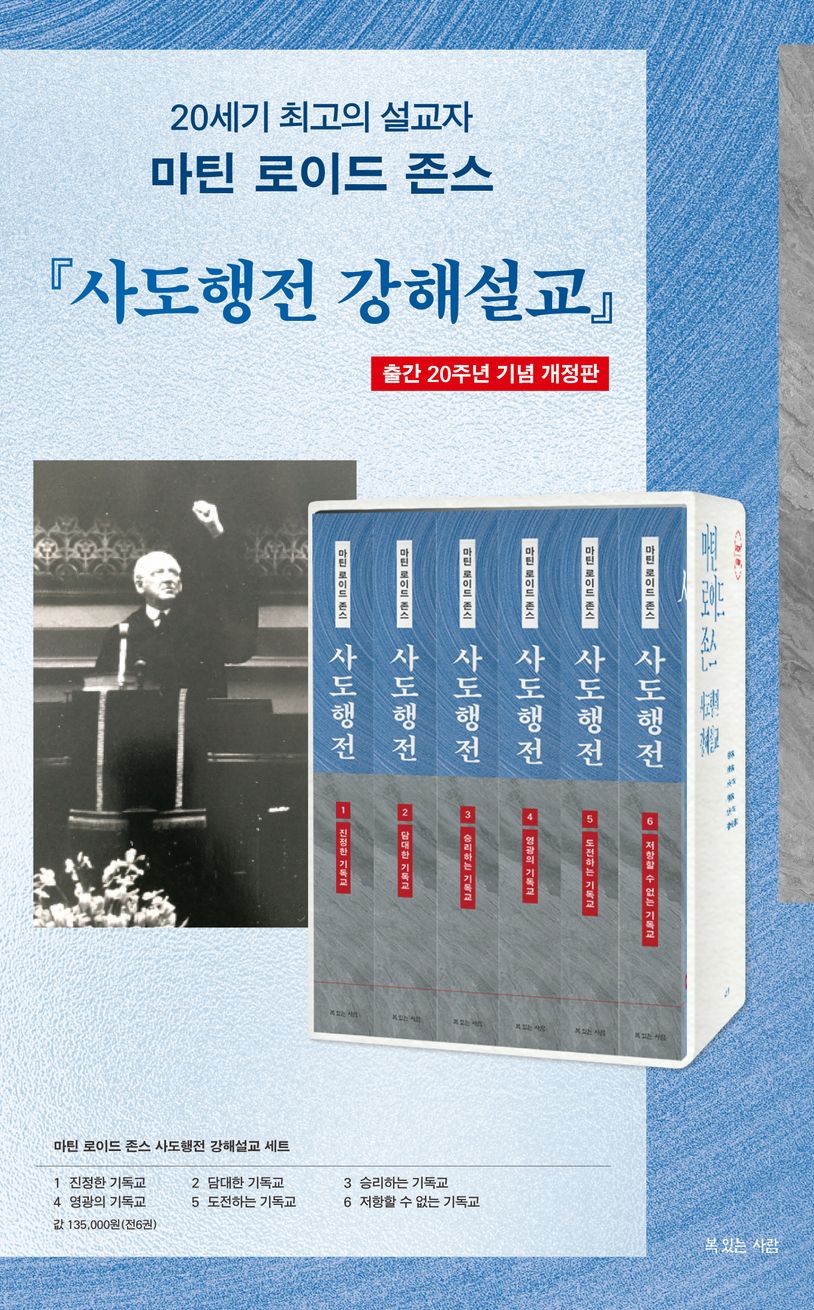 출간 이후 수많은 독자들의 사랑을 받아 온 마틴 로이드 존스의 『사도행전 강해설교』 시리즈가 출간 20주년을 맞아 개정판으로 새롭게 출간되었다. 마틴 로이드 존스가 갑작스런 질병으로 1968년 사임하기 전까지 웨스트민스터 채플 주일 저녁예배 때 전한 사도행전 설교 메시지다.