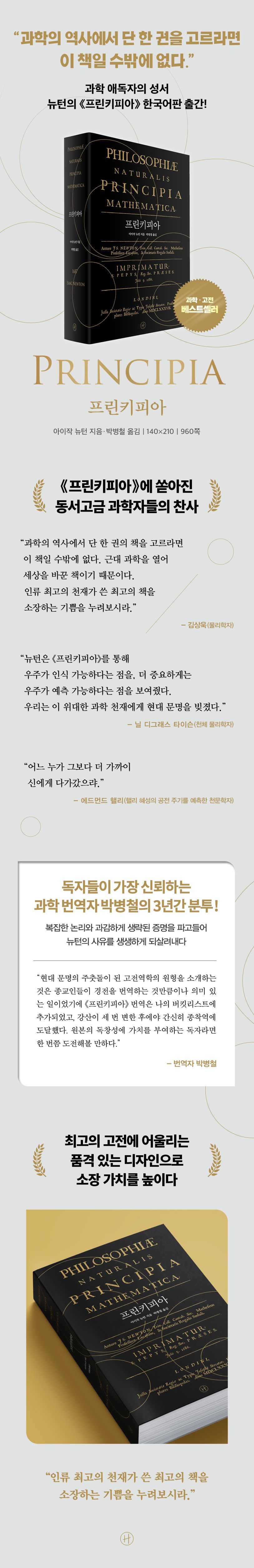 “과학의 역사에서 단 한 권의 책을 고르라면 이 책일 수밖에 없다. 근대 과학을 열어 세상을 바꾼 책이기 때문이다. 인류 최고의 천재가 쓴 최고의 책을 소장하는 기쁨을 누려보시라.”