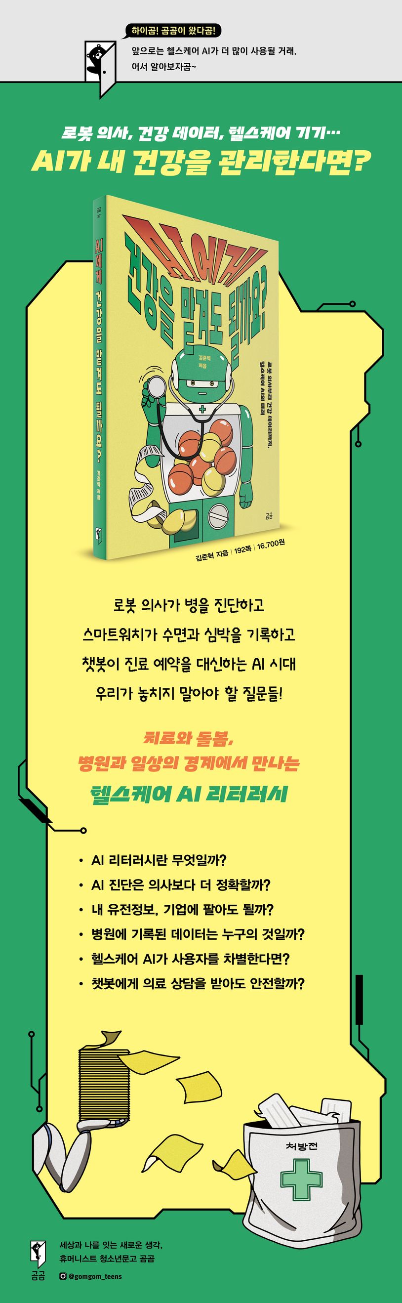 AI와 함께 살아가야 하는 세대에게 기술을 비판적으로 이해하고 스스로 판단할 힘을 기르는 것은 매우 중요하다. 《AI에게 건강을 맡겨도 될까요?》는 AI와 의료가 만나는 최전선에서 ‘기술과 인간의 공존’을 고민하는 청소년 교양서다. 저자는 “AI를 활용할 권리는 전문가에게만 있는 것이 아니다”라며, 모두가 헬스케어 AI의 작동 원리와 윤리적 기준을 이해해야 한다고 강조한다.