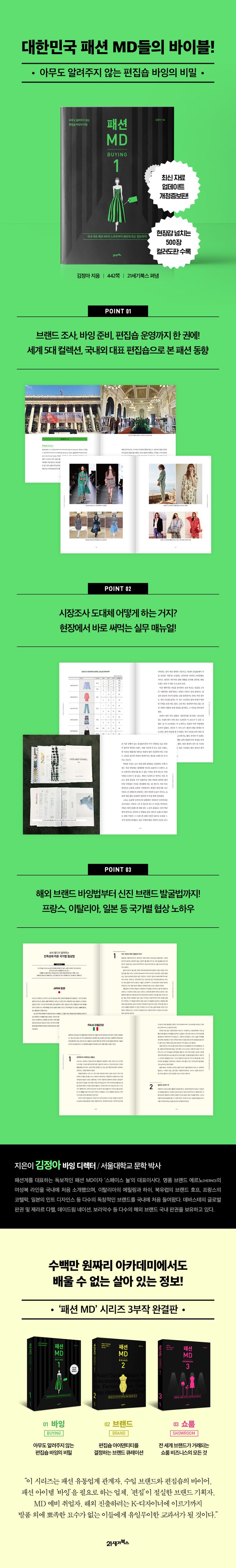패션 MD는 누구일까? 편집숍은 무엇을 파는 곳이지? 패션 위크는 왜 열릴까? 패션에 관심이 있다면 한 번쯤 품었을 질문이지만 과거에만 해도 이런 질문에 대한 답을 명확히 얻을 수 없었다. 그때 세상에 공개된 『패션 MD』 시리즈는 패션 MD를 꿈꾸는 사람뿐 아니라 패션을 사랑하는 패션 피플의 모든 궁금증을 단숨에 해소해 주었다. 그리고 10년 가까운 시간이 흐른 지금, 우리에게는 최신 패션 동향에 대한 업데이트가 필요하다.