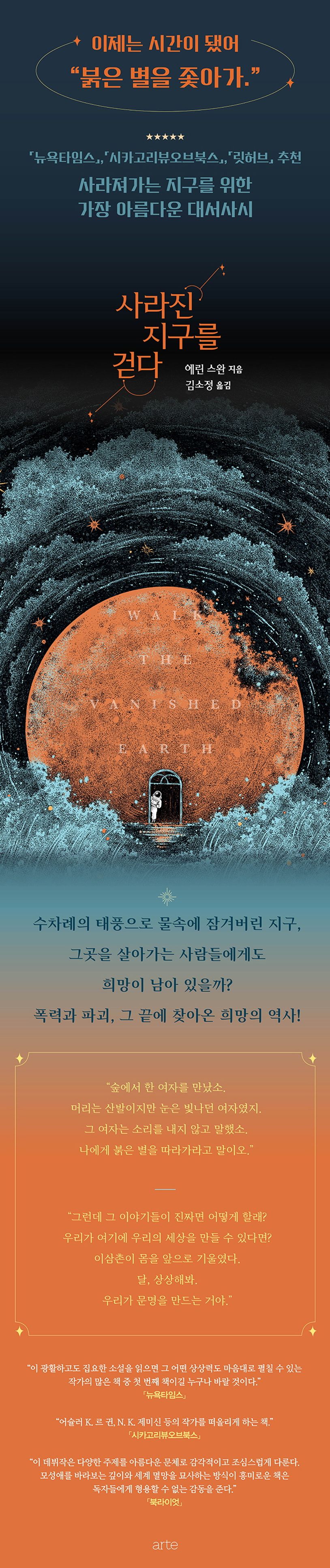 어슐러 K. 르 귄, N. K. 제미신을 잇는 SF 소설계의 떠오르는 작가 에린 스완의 데뷔작이 한국에 출간되었다. 출간 전부터 영미 독자들의 열렬한 지지와 찬사를 받은 이 작품은 현재 우리가 직면한 기후 변화 문제를 한 가족의 과거와 미래를 통해 예리하면서도 부드러운 감성으로 묘사한다.