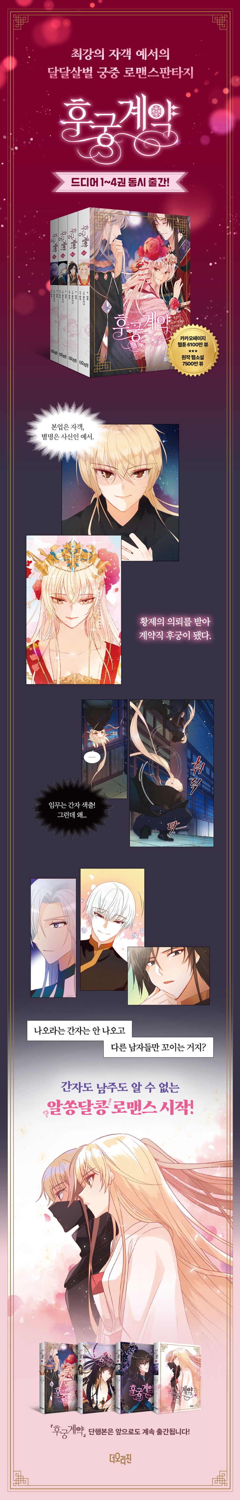 웹툰 〈후궁계약〉은 동명의 웹소설을 원작으로 만든 작품이다. 조선 왕실과 명나라 황실이 섞여 있는 듯한 이국적인 세계관과 일반적인 로맨스판타지 장르와는 달리 최후의 최후까지 메인 남자주인공이 누군지 알 수 없는 이야기 진행으로 카카오페이지 독자들의 사랑을 받았다.