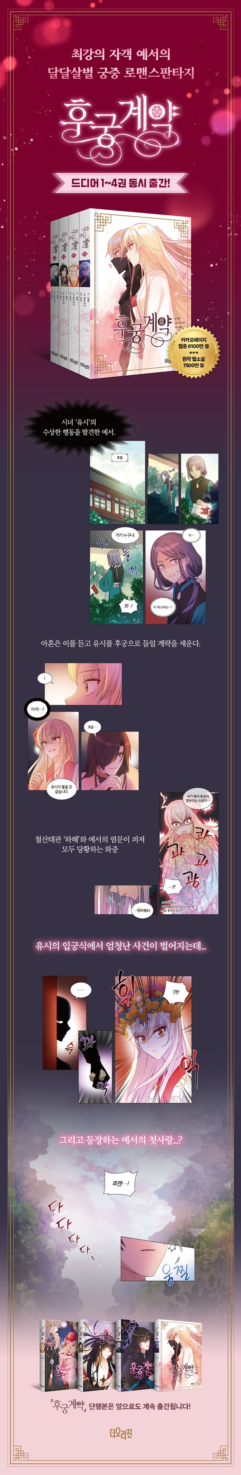 웹툰 〈후궁계약〉은 동명의 웹소설을 원작으로 만든 작품이다. 조선 왕실과 명나라 황실이 섞여 있는 듯한 이국적인 세계관과 일반적인 로맨스판타지 장르와는 달리 최후의 최후까지 메인 남자주인공이 누군지 알 수 없는 이야기 진행으로 카카오페이지 독자들의 사랑을 받았다.