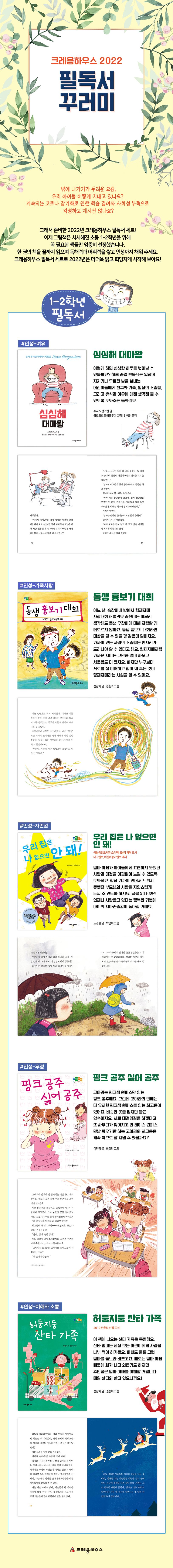 코로나 장기화로 인한 학습 결여와 사회성 부족으로 걱정하는 학부모님을 위해 준비했던 2022년 크레용하우스 저학년 필독서 세트를 개정판으로 다시 엮었습니다. 〈나랑 친구 할래?〉 대신 〈핑크 공주 싫어 공주〉를 넣어 더 현실적인 우정 문제를 생각해 볼 수 있도록 구성했습니다. 이제 그림책은 시시해진 초등 1-2학년을 위해 꼭 필요한 책들만 엄중히 선정했습니다. 한 권의 책을 끝까지 읽으며 독해력과 어휘력을 쌓고 인성까지 채워 주세요. 크레용하우스 필독서 세트로 학교생활을 더더욱 밝고 희망차게 시작해 보아요!