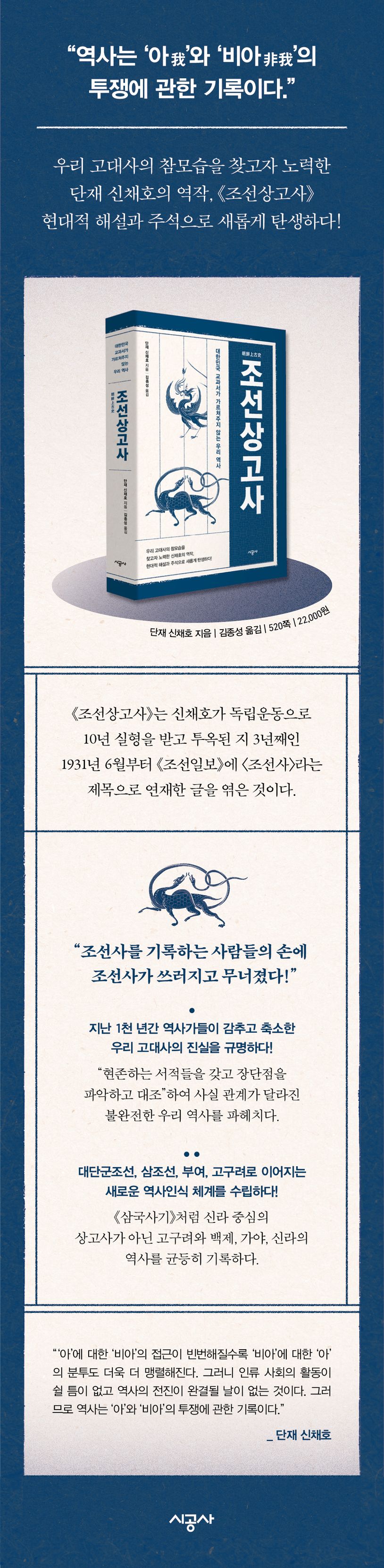 《조선상고사》 원문은 지금의 우리말과 큰 차이가 있어 내용을 이해하며 읽는 것이 쉽지 않다. 또한 신채호의 기억력에 의지한 부분이 많아 연도나 명칭 등에 오류가 다소 있다. 이 책은 《조선상고사》 원문을 현대어로 바꾸고, 명백한 오류를 바로잡는 한편, 원문에 없는 해설과 주석을 별도로 추가함으로써 독자들이 보다 쉽고 정확하게 신채호의 글을 이해할 수 있도록 했다.