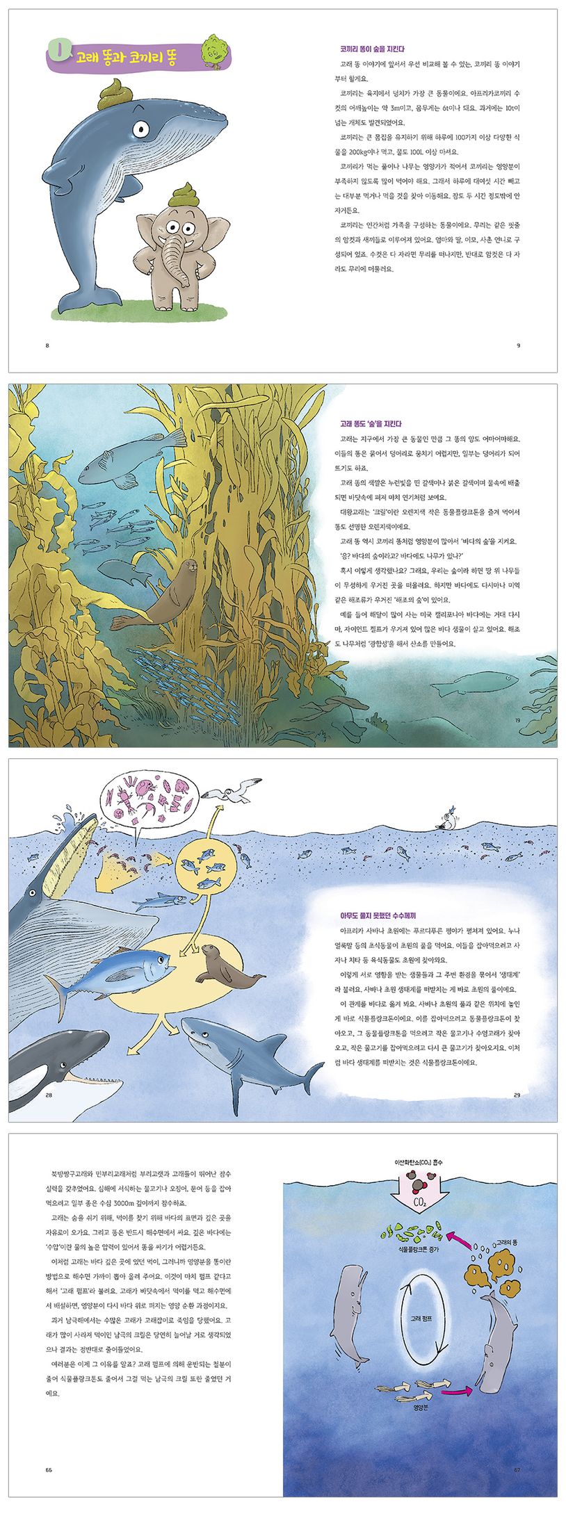 이 책은 고래의 생태뿐만 아니라 고래 똥이 숲을 살리는 메커니즘, 철분의 역할, 바다 생태계의 숨은 연결고리 등 다양한 과학 지식을 어린이의 눈높이에 맞추어 설명합니다. 평범한 똥 이야기에서부터 시작해 기후 변화, 광합성, 생태계 순환 등 초등 교과서에 나오는 주요 과학, 환경의 핵심 주제로 자연스럽게 확장되는 점이 이 책의 가장 큰 강점입니다.