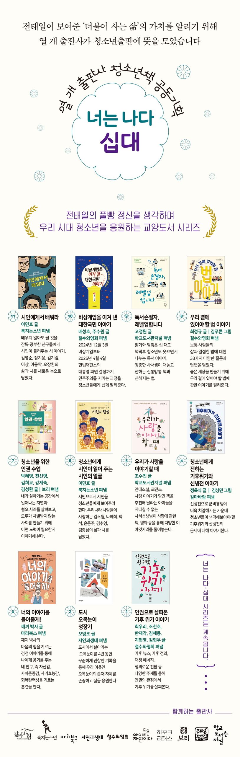청소년들은 이 책을 통해 2024년부터 2025년까지 민주주의를 지키기 위한 시민들의 투쟁 과정과 대통령, 국회, 헌법재판소의 역할과 권한을 살펴보며 진정한 민주주의가 무엇인지에 대해 생각해 볼 수 있다.