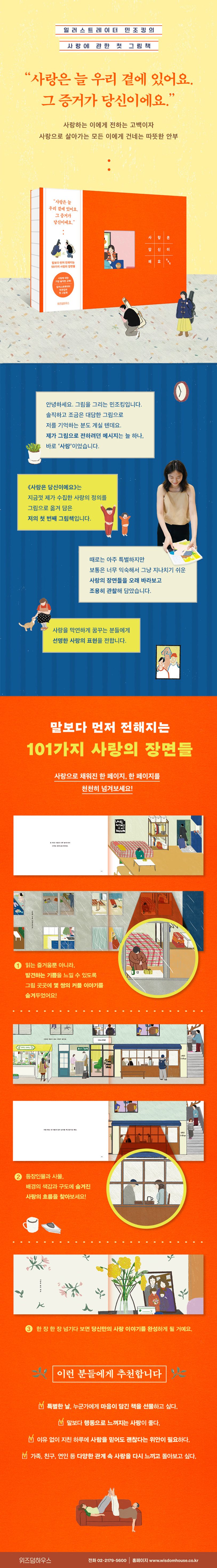 일러스트레이터 민조킹이 오랜 시간 관찰하고 수집해온 사랑의 순간들을 101가지 장면으로 담아낸 첫 그림책이다. 이 책은 대단하거나 거창한 사랑이 아니라, 우리가 매일 마주하지만 종종 지나쳐버리는 사랑의 본질과 속성을 섬세하게 포착한다. 사랑을 수식하는 화려한 말보다 마음으로 먼저 전해지는 사랑의 비언어적인 표현을 세밀하게 그려낸다.