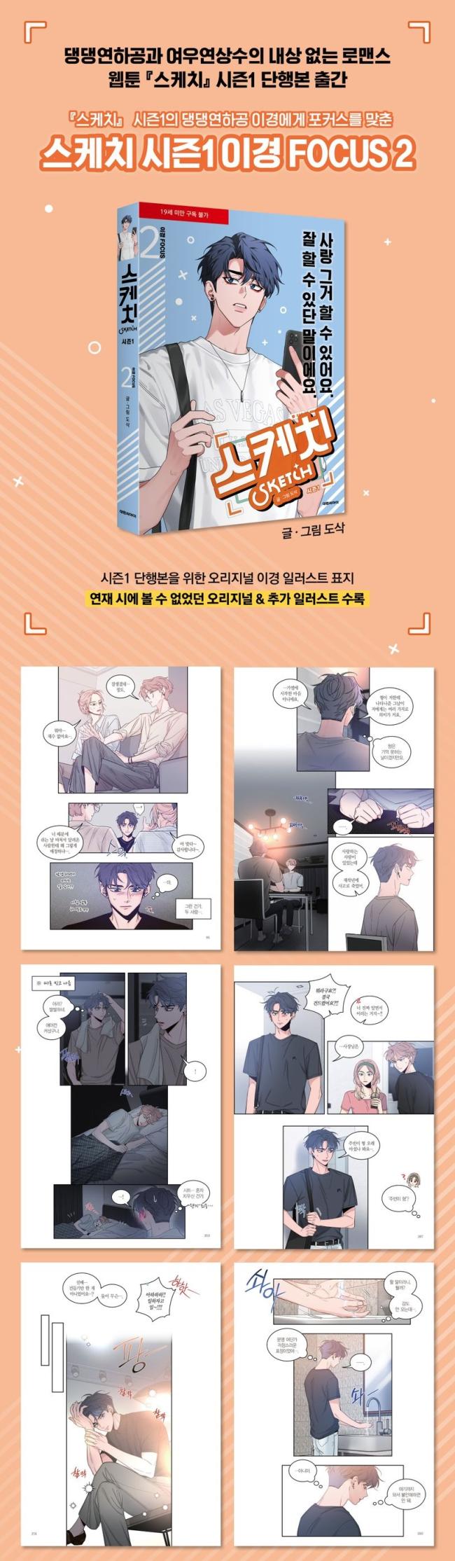 너무불안해서그래요형도제가좋다고말해준게너무기쁘지만…주빈을정면으로바라보며마음속깊은곳에주빈을담는이경.연애경험이없는이경에게주빈과의만남은특별한의미였다.짜증나고피곤할때도,쩔쩔매며바보짓을하고있을때에도자신을구해준주빈,하고싶은일까지찾아준주빈은이경에게절대가벼운존재가아니었다.주빈은나타나준것만으로이경에게는여러가지로의미를가졌다.주빈이과거에사랑한사람에비해나는너무나보잘것없지않을까?불안하지만,초조하지만이경은주빈의손을더세게붙잡는다.주빈을절대놓치고싶지않다.“사랑그거할수있어요.잘할수있단말이에요,저는….그러니까,이젠정말대답해줄때도됐잖아….”주빈은이경에게어떤대답을들려줄까?캐릭터의마음까지담은단행본표지오리지널일러스트『스케치시즌1이경FOCUS2』역시도삭작가가단행본만을위해새로그린표지일러스트가담겨있다.2권의표지속최이경은길을잃은것처럼정면을보지않고주변을두리번거리는모습이다.최대한표정과구도에시선이갈수있도록의도적으로하얀티셔츠를입혔으며,대칭되는『스케치시즌1주빈FOCUS2』표지의주빈은이경과처음만났을때처럼겨울옷을입고있지만,이경은주빈과다시재회하여사건이벌어지는현재,여름옷을입고있다.표지속이경은주빈이해집어놓은길을헤매다다시주빈이라는목표를찾아가는시즌1의후반부이경의상황에어울리는일러스트다.
