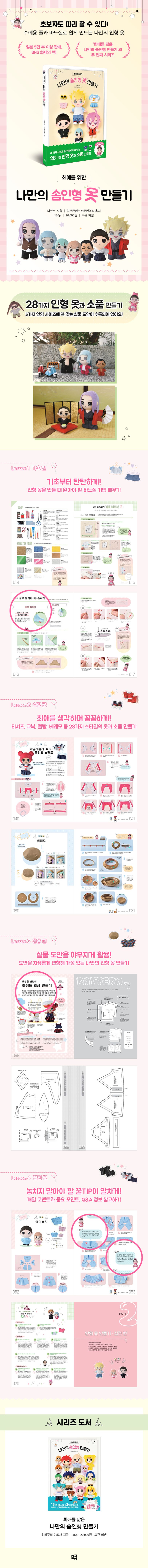솜인형이 매력적인 굿즈인 이유는 옷을 갈아입힐 수 있기 때문이다. 인형 바디 및 헤어부터 인형 옷 도안까지 솜인형 만들기에 필요한 실물 도안을 빠짐없이 알차게 수록했다. 직접 만든 최애 인형에게 원하는 옷을 입히는 즐거움을 느껴 보자.