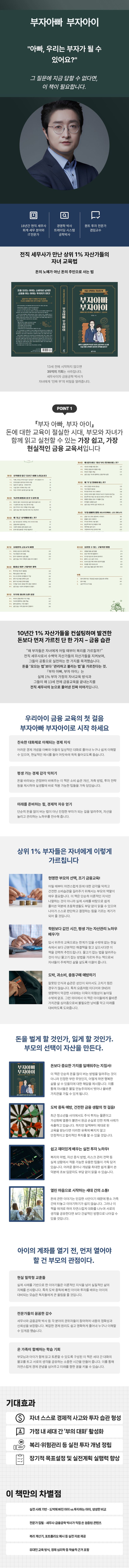 어느 주식에 관심을 두고 준비해 가는 게 옳은 방향인지, 왜 ‘부’를 알아야 하는지, 유태인의 금융교육 비법에서 우리가 가져올 것은 무엇인지, 자녀와 함께 부모가 어떻게 금융교육을 통해 자기 계발을 해나갈 수 있는지 알차고 다양한 내용으로 실전에 바로 적용할 수 있는 모델을 제시하고 있다.