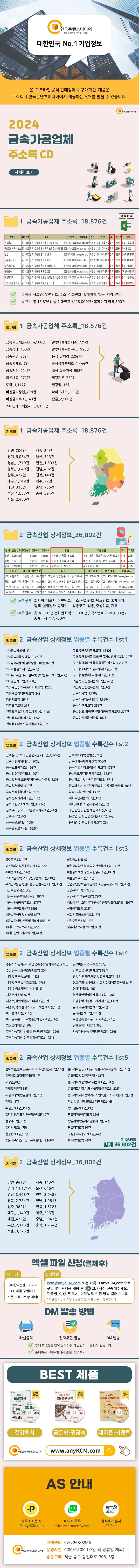 수록항목:상호명,우편번호,주소,전화번호,홈페이지,업종,지역,분야
