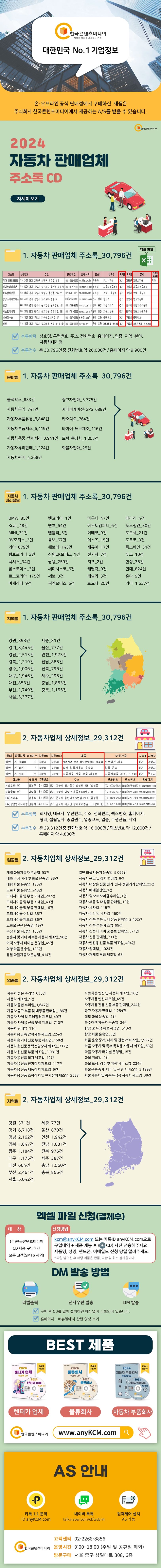 수록항목:상호명,우편번호,주소,전화번호,홈페이지,업종,지역,분야,자동차대리점