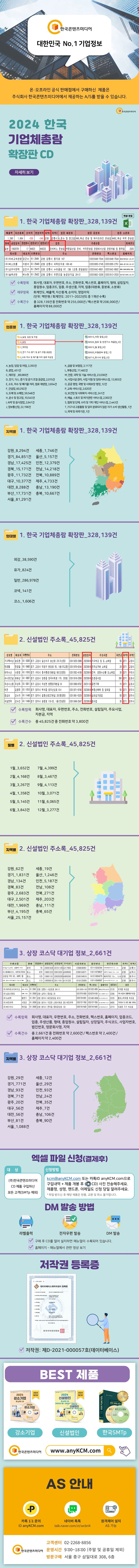 수록건수:총328,139건중전화번호약255,000건/팩스번호약208,000건/홈페이지약88,000건/매출액,순이익,영업이익약274,000건/자산총계약314,000건