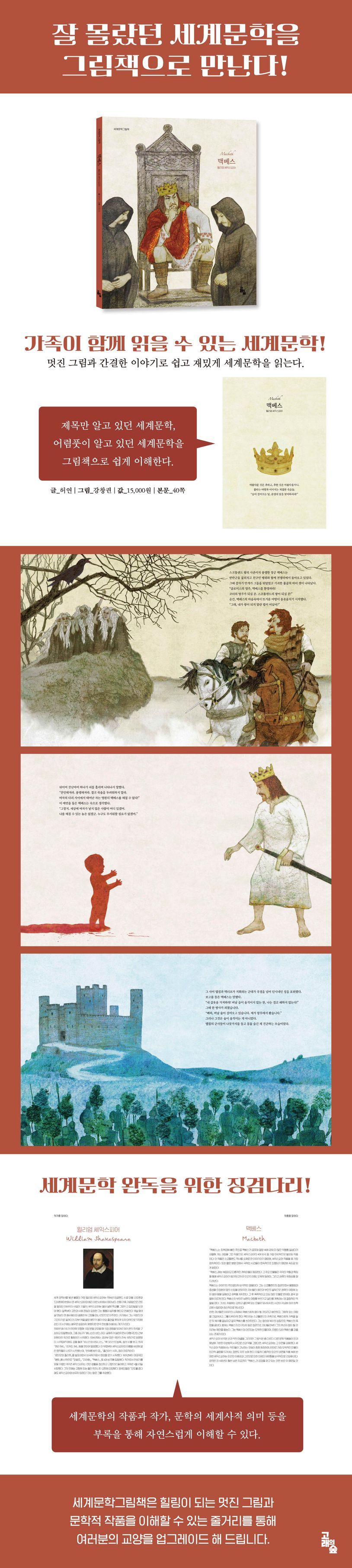 스코틀랜드의 장군 맥베스는 전장에서의 승리로 많은 사람들에게 찬사를 듣는다. 돌아오는 길에 우연히 만난 세 마녀들로부터 그가 코더의 영주가 되고, 왕이 될 것이라는 예언을 듣게 된다. 얼마 후, 그는 황제의 전령들로부터 코더의 영주가 되었다는 소식을 듣게 되자, 그는 마녀들의 예언대로 왕이 될 수도 있겠다는 야욕을 가지게 된다. 그 이야기를 들은 맥베스의 아내 역시 맥베스를 부추겼고, 결국 그는 왕을 살해하고 왕위를 차지한다. 그러나 그는 아내와 함께 죄책감과 공포에 시달리게 되었고 서서히 파멸해 간다. 한 인간의 욕망이 어떤 대가를 치르면서 결과를 맞이하게 될지 『맥베스』를 통해 만나보자.