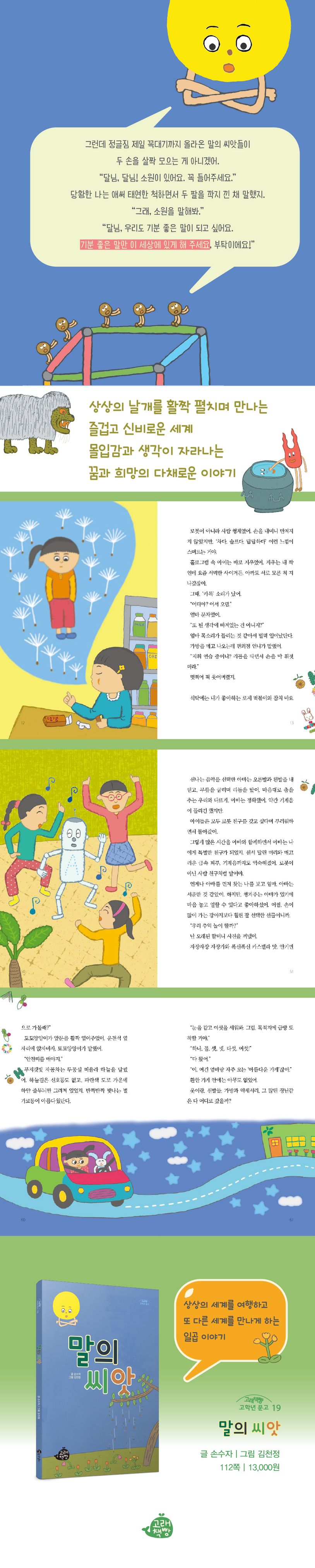 아이들은 작가의 이야깃주머니를 통해 상상의 날개를 활짝 펼칩니다. 그 안에서 맘껏 상상하는 즐거움을 누리고 이야기에 동화되고 공감하는 짜릿함을 맛보게 됩니다. 그러면서 더 크고 높은 꿈과 희망을 품게 되고 생각은 한 뼘 자라납니다.