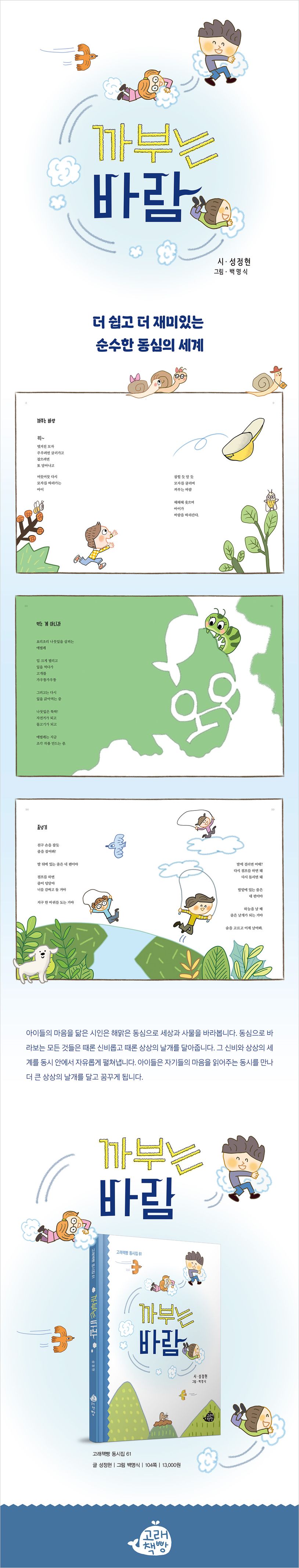 저자:성정현 전남나주에서출생했으며공주대학교교육대학원을졸업했습니다.2012년《아동문예》문학상에동시가당선되면서작품활동을시작하였습니다.2021년《월간문학》신인작품상에시가당선되었습니다.제3회영광디카시공모전에서동상을수상했고,광주문화재단에서문화예술육성지원금을받았습니다.지은책으로동시집『고양이가훔친하늘』(2016),『뛰어오는비』(2022)가있습니다.한국동시문학회,한국문인협회회원으로활동하고있습니다. 그림:백명식 강화에서태어나서양화를전공하고출판사편집장을지냈습니다.어린이들이좋아하는책을쓰고그릴때행복하답니다.쓰고그린책으로는『돼지학교』시리즈,『인체과학그림책』시리즈,『맛깔나는책』시리즈,『저학년스팀스쿨』시리즈,『명탐정꼬치』시리즈,『냄새나는책』시리즈,『미생물투성이책』시리즈,『좀비바이러스』시리즈,『안녕!한국사』시리즈,『나는나비』등500여권이있습니다.소년한국일보일러스트상,소년한국일보출판부문기획상,중앙광고대상,서울일러스트상을받았습니다.