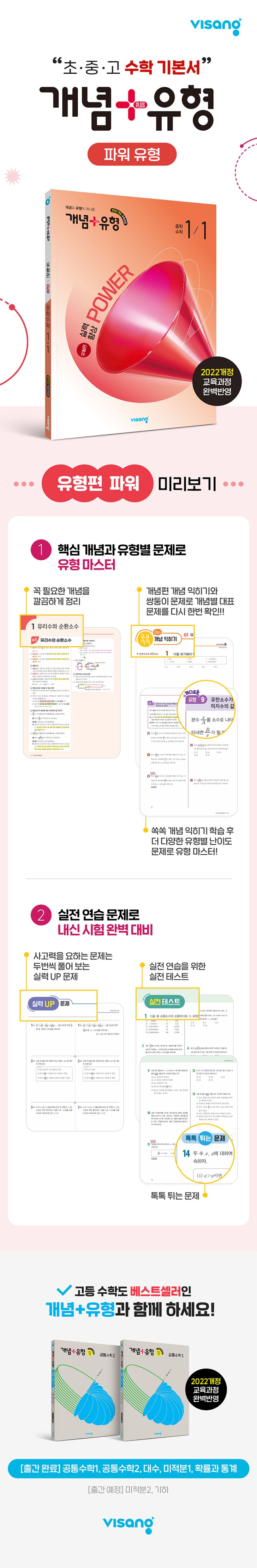 기본 개념을 익히는 [개념편]과 유형별, 난이도별로 다양한 실전 문제를 익힐 수 있는 [유형편 파워]로 이루어진 중학 수학 기본서!